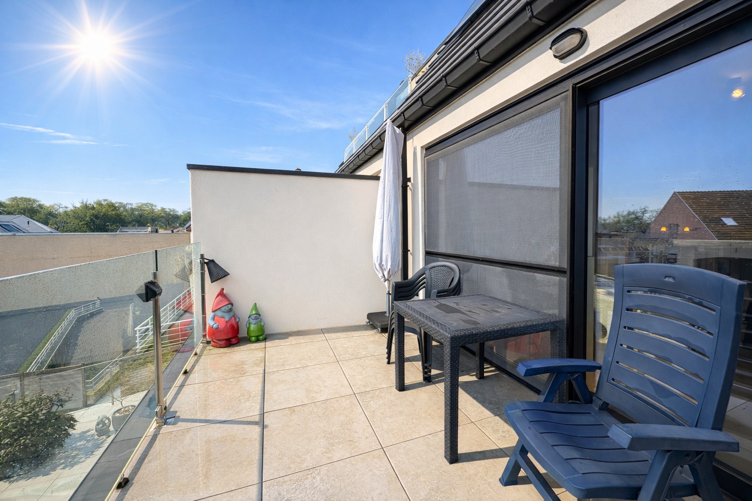 Indeling: leefruimte met open keuken, toilet, badkamer met inloopdouche, 3 slaapkamers en zonneterras.