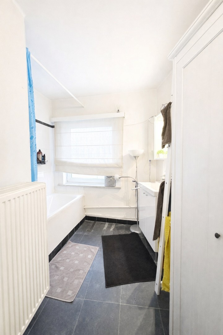 In deze gezellige woonst beschik je over een bescheiden inkom, leuke en absoluut lichtrijke leefruimte, uitgeruste keuken met ruime praktische berging/wasplaats. De badkamer beschikt over ligbad en lavabomeubel, er is een apart toilet en 2 volwaardige slaapkamers.