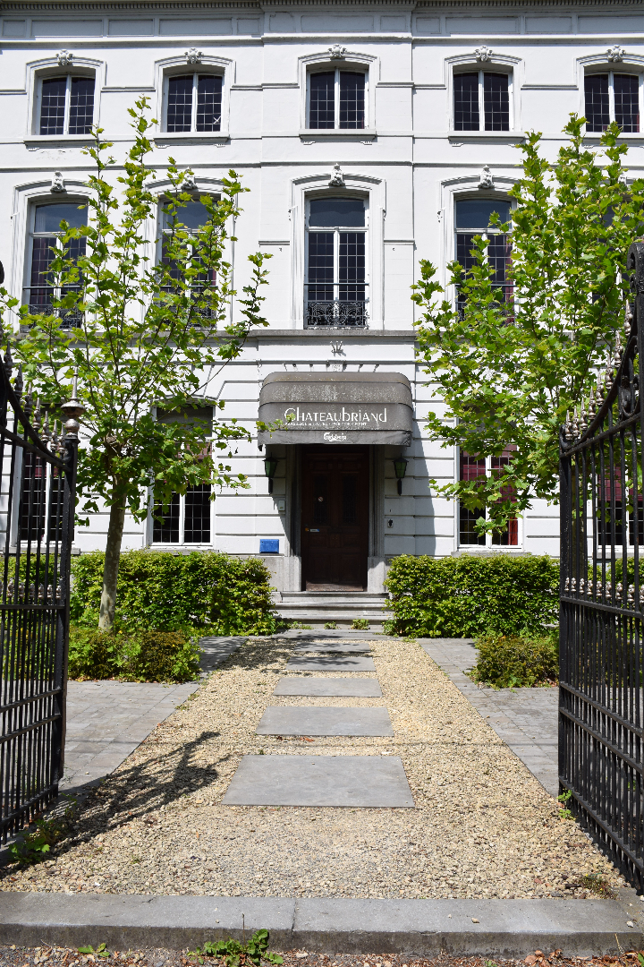 Op het gelijkvloers zijn er 2 ruimtes die als bureau/conferentiezaal waren ingericht, keuken en restaurant met vooraan als achteraan een terras.