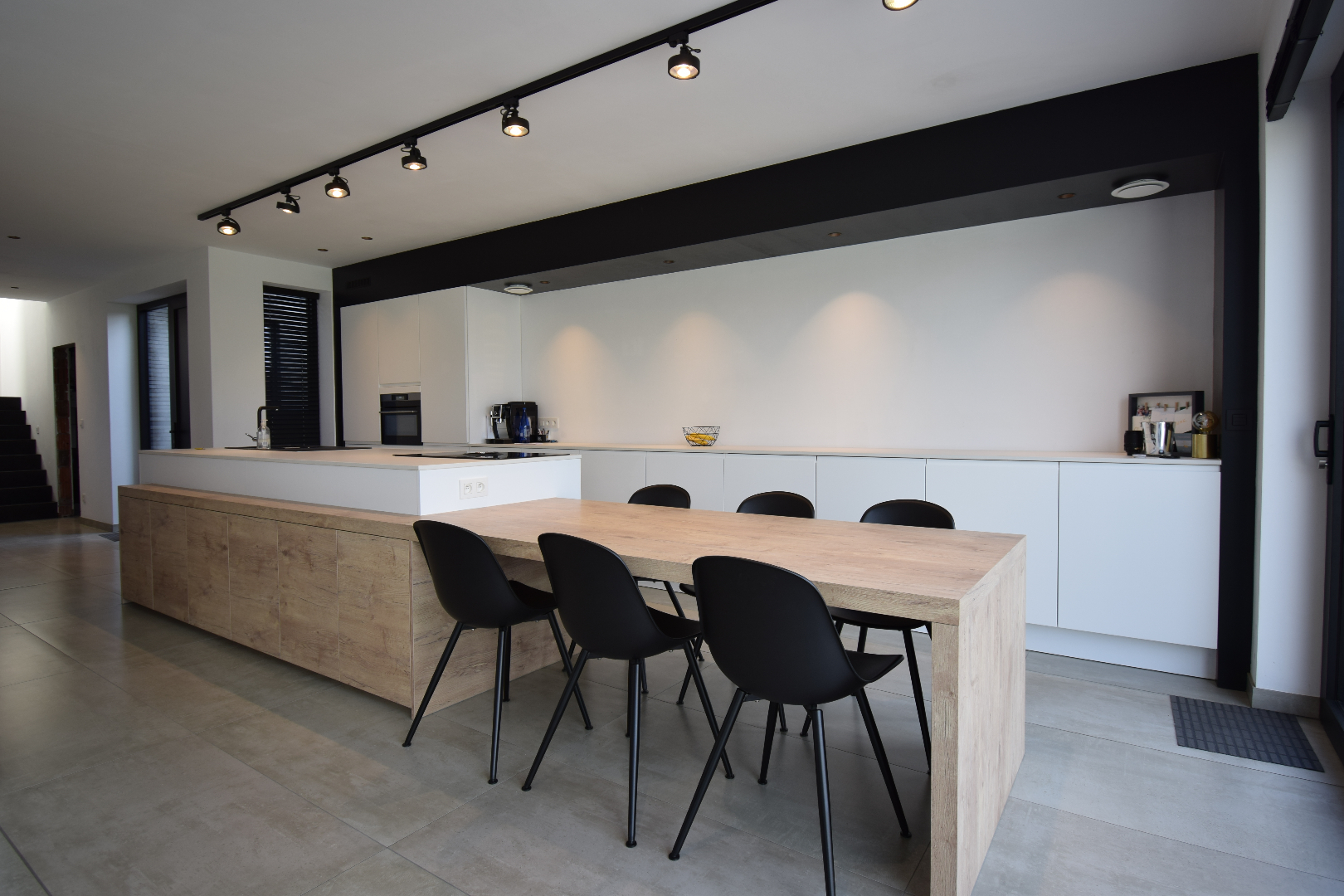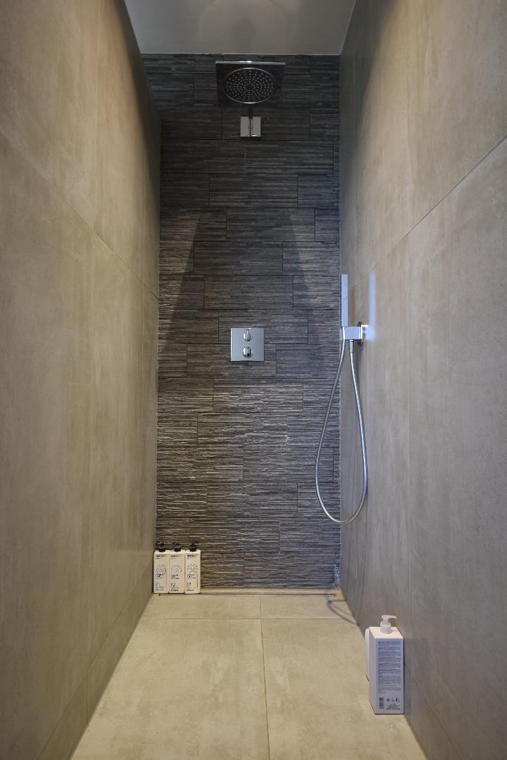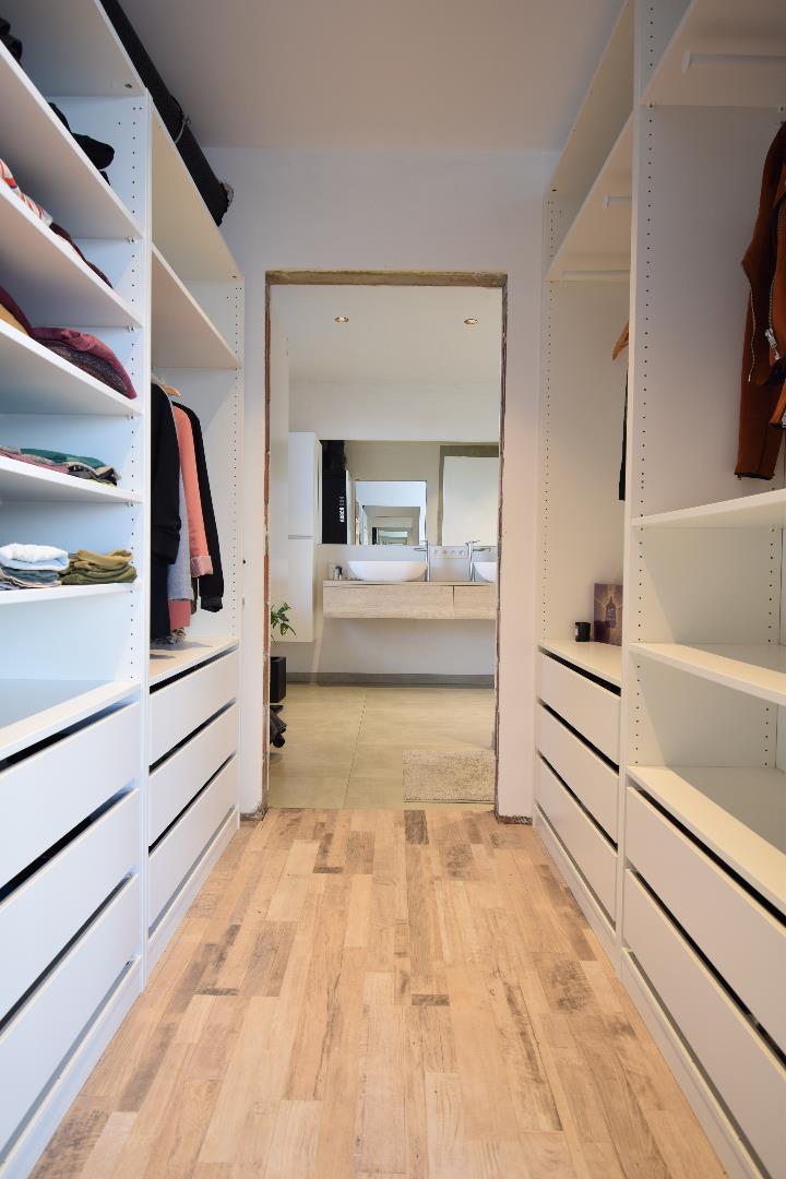 Bij het betreden van deze woning komt u in een bescheiden inkom met uitgerust gastentoilet. Verder heeft u toegang tot de royale leefruimte met open keuken waar u kunt genieten van het zicht op de tuin. Het keukengedeelte is hyper-geïnstalleerd en er werd gebruik gemaakt van zeer hoogkwalitatieve materialen (werkblad in Dekton, enz). Alvorens u de trap, uitgewerkt met graniet, naar de bovenverdieping neemt komt u een eerste slaapkamer tegen (momenteel uitgerust als kapsalon) en een ruime berg/wasplaats. Op de bovenverdieping is de overloop voorzien van ingemaakte kasten wat u gigantische opbergmogelijkheden biedt. Op dit verdiep vindt u een tweede ruime slaapkamer en een apart toilet. Zalig wakker worden doet u in de imposante masterbedroom met zicht op de tuin. Via de dressingruimte komt u in de badkamer terecht. Deze is uitgerust met een inloopdouche en knap lavabomeubel.