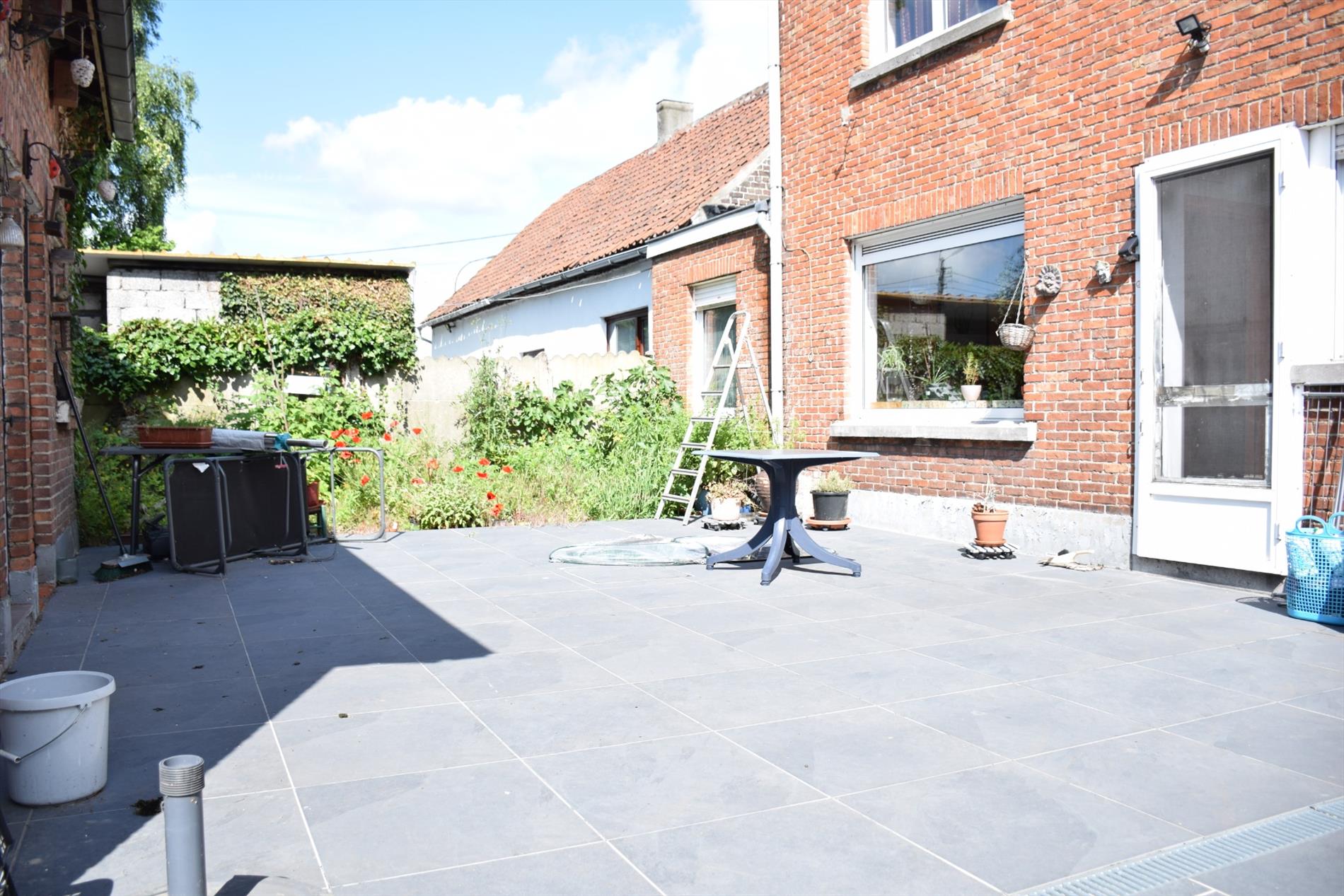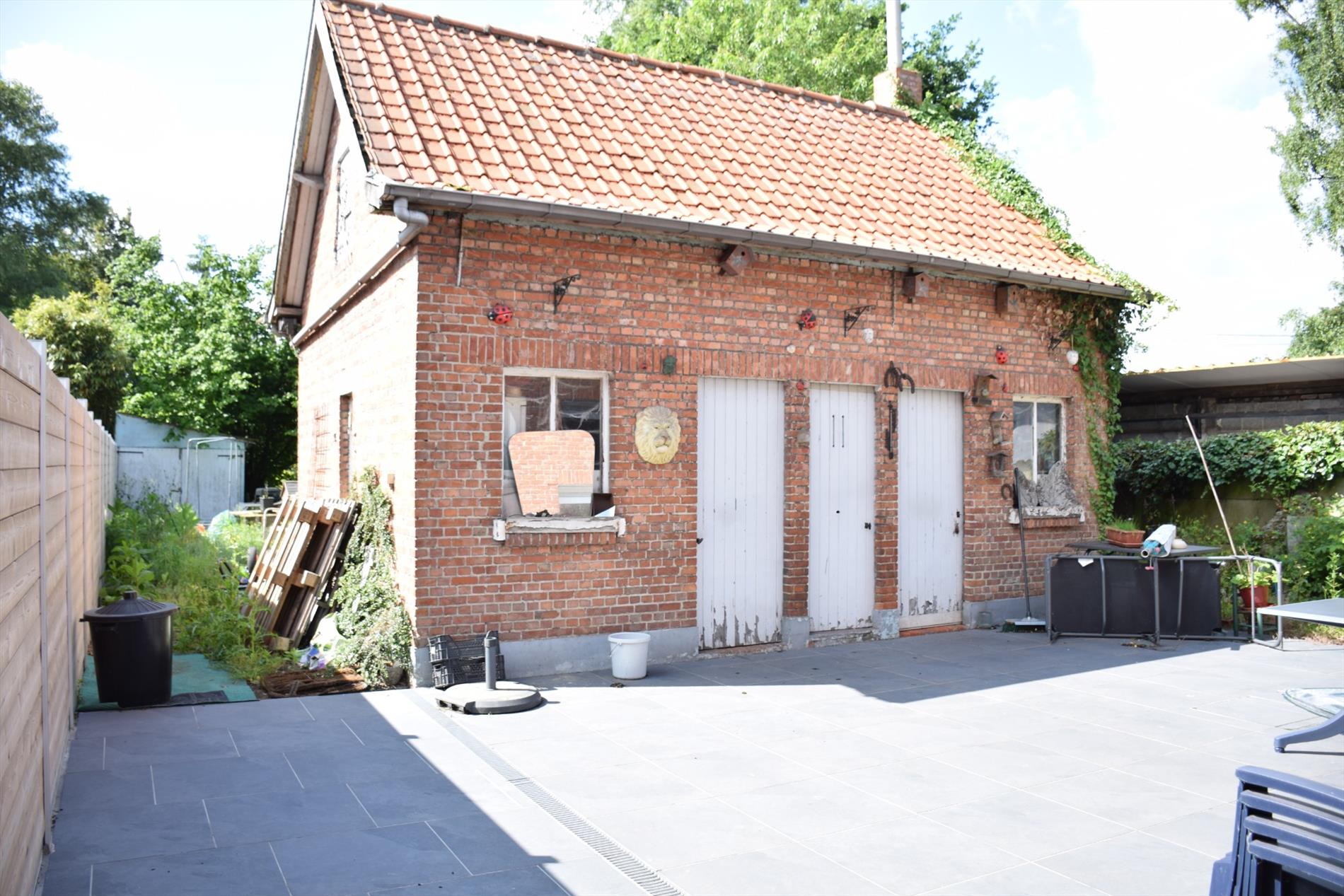 Achteraan de woning vindt u een ruim zonneterras. Tuinmeubels, barbecue, grasmachine, enz kunnen eenvoudig opgeborgen worden in de twee stallingen. Achteraan de woning heeft u een hele grote tuin die daarenboven nog eens uitstekend georiënteerd is.