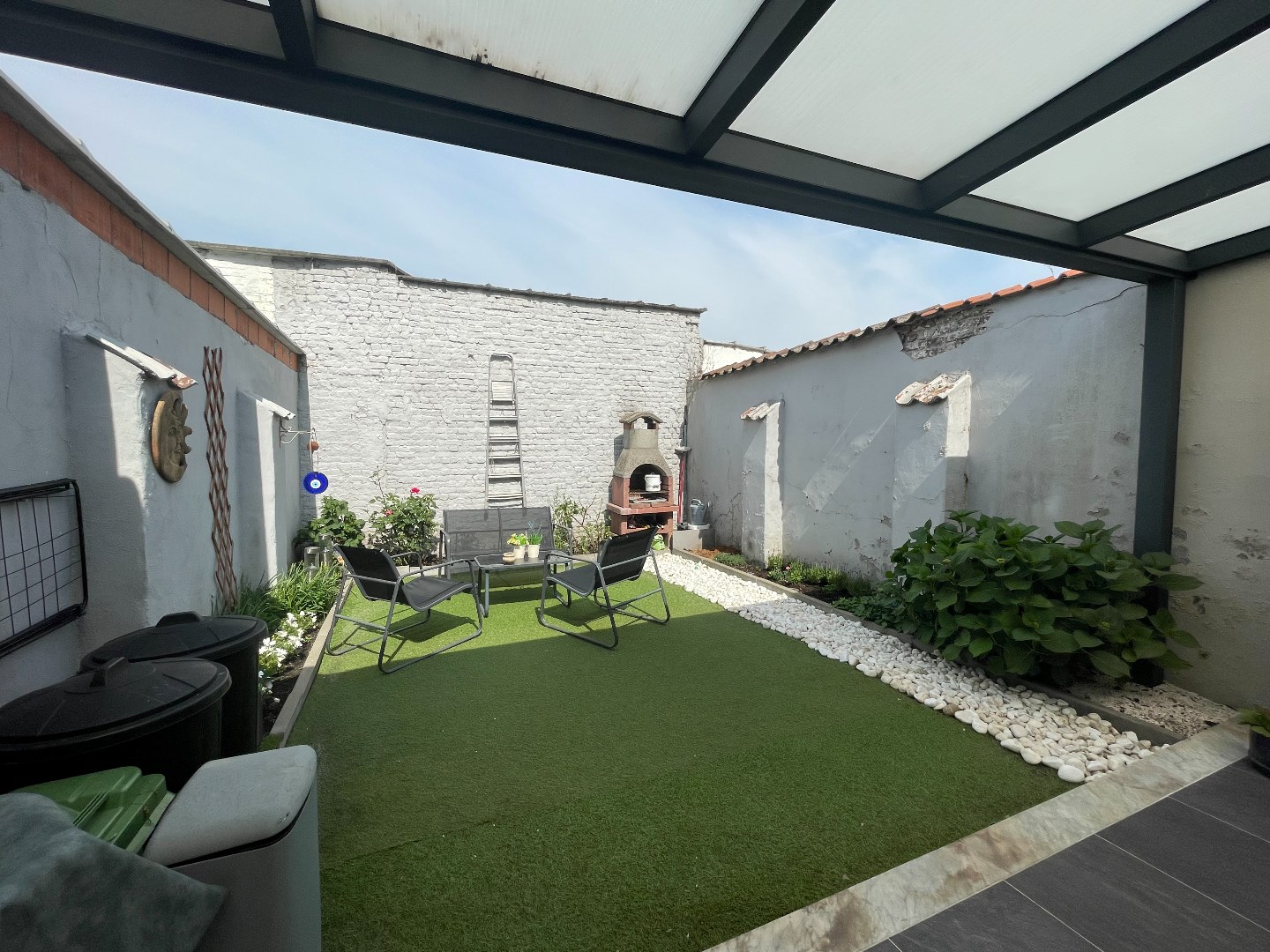 Buiten geniet u van een ideale en makkelijk te onderhouden zonnige stadstuin.