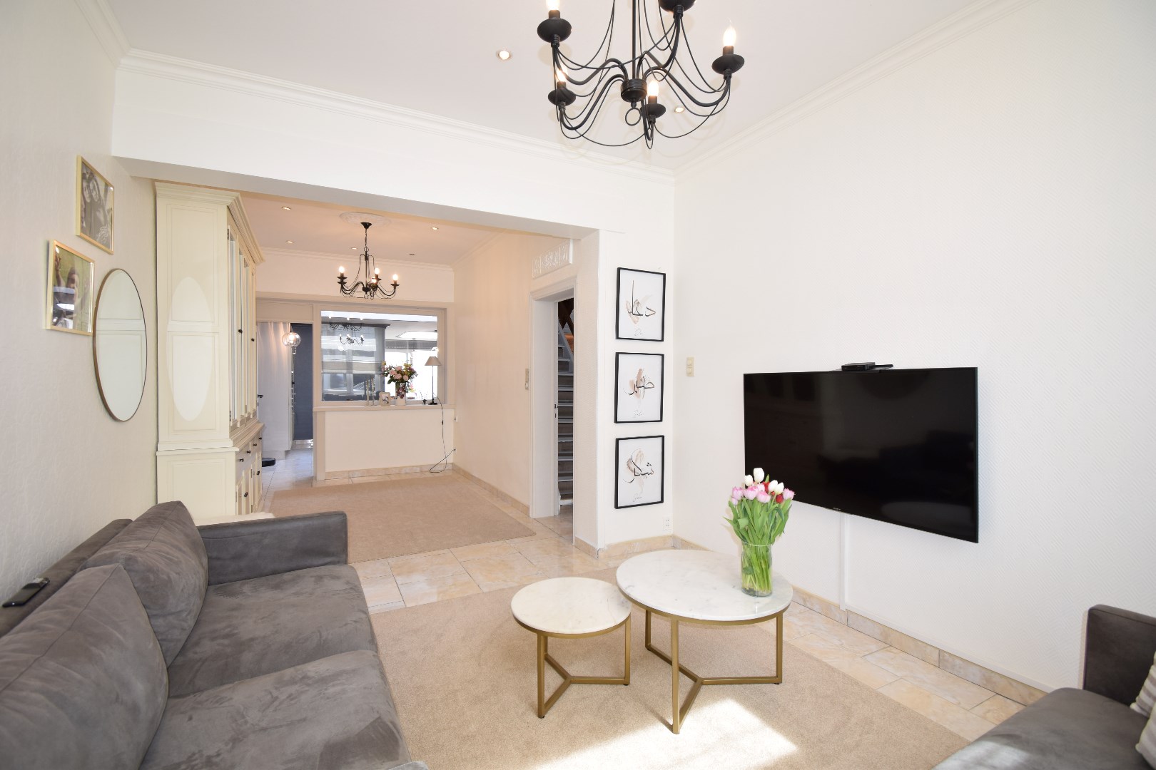 De bescheiden inkomhal met gastentoilet brengt u naar de lichtrijke en zalige leefruimte waar je de rust die deze woning uitstraalt kan voelen. De aangrenzende woonkeuken werd volledig vernieuwd. Ze is VOLLEDIG uitgerust en voorzien van extra lichtkoepels. Op die manier werd een lichtrijke en aangename ruimte gecreëerd. De badkamer is voorzien van een ruime inloopdouche, dubbel lavabomeubel en toilet. De authentieke trap brengt u naar de eerste verdieping met 2 slaapkamers. De tweede verdieping biedt nog eens ruimte aan twee extra slaapkamers. Absolute meerwaarde is de kelderruimte onder de woning die perfect kan dienen als extra opslag.